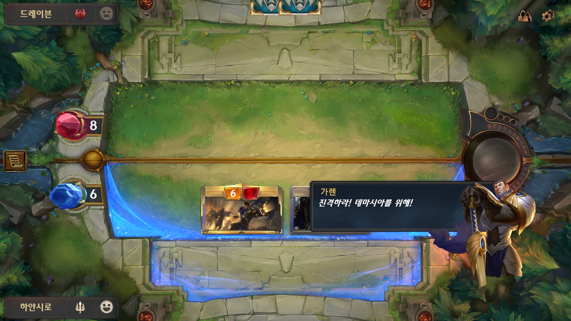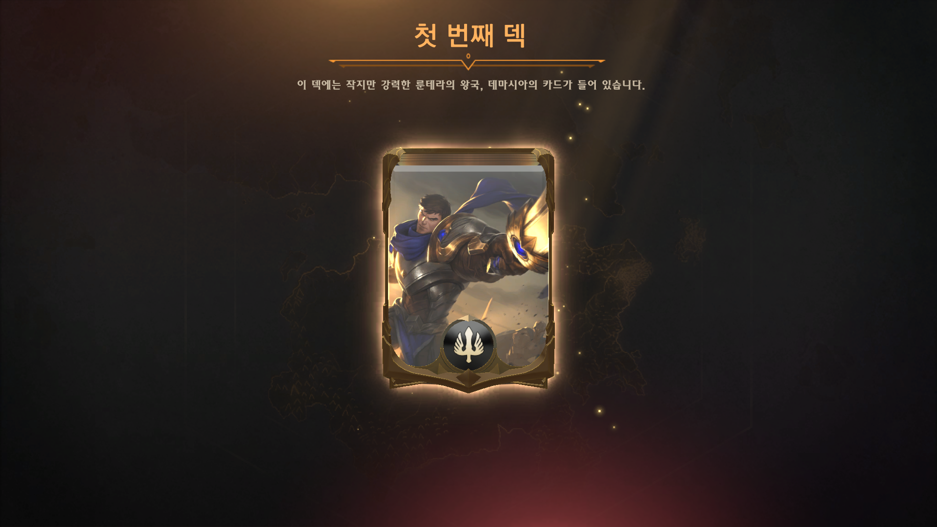 첫 번째 덱 룬테라의 왕국 데마시아의 카드입니다.