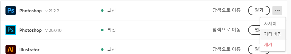 포토샵 옆에 ... 표시를 클릭후 기타버전에서 원하는 구버전을 다운 받으시면 됩니다
