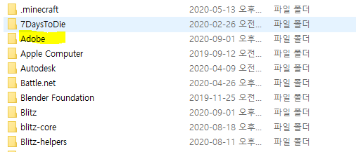 어도비 폴더를 들어가신 후